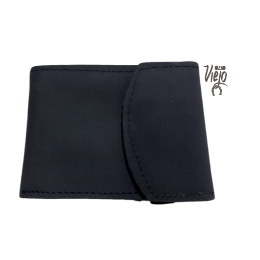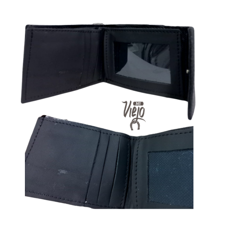 Billetera de cuero con capacidad para 3 tarjetas. Cuenta con un visor para colocar el doumento, un compartimento para billetes y tiene un botón para mayor seguridad.